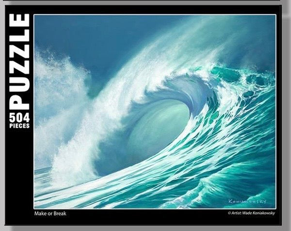 Bring the ocean home piece by piece. Our Ocean Art Puzzles feature original artwork by renowned surf artist Wade Koniakowsky, capturing the spirit of the sea in vibrant detail. A beautiful way to relax, unwind, and connect with the coast. Once completed, the finished puzzle can be framed!